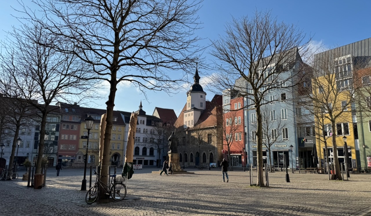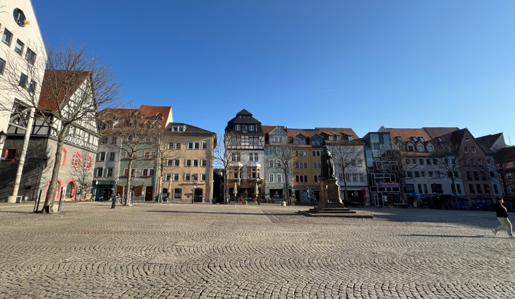My excitement reading this book was so visceral that this January I travelled to Jena and Weimar to roam the streets they once inhabited. Like them, experiencing a place using all the senses is essential for me to understanding it. Jena didn’t disappoint, despite much of its architecture being destroyed during WWII and later by GDR urban policies. I could almost hear their excited chatter as they crossed the cobbled marketplace, made their way to the Schlegels’ salon, or wandered each other’s minds as they strolled the river in ‘Paradise’. This was Germany at its best – a land of poets and thinkers as well as composers such as Bach, Beethoven and Handel.