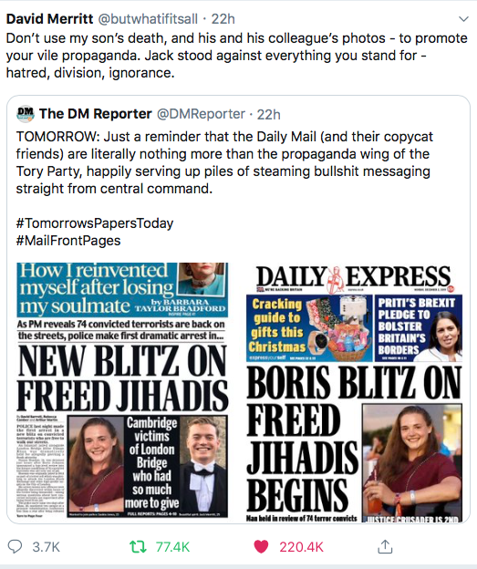 And what ‘debt to society’ is he talking about? The debt of having been failed by the education system, of having lived in poverty due to the absence of a living wage, of having been a victim of systemic disadvantage / racism / drug addict parents / trauma / lack of opportunity? Not all criminals fall into those categories, but a great many do.
